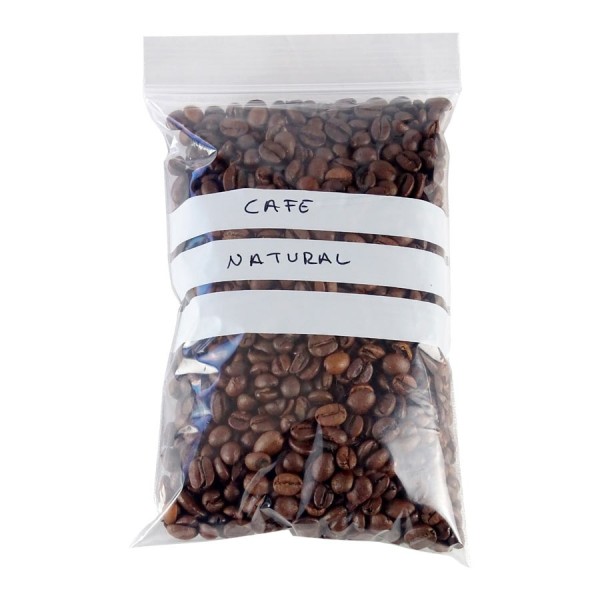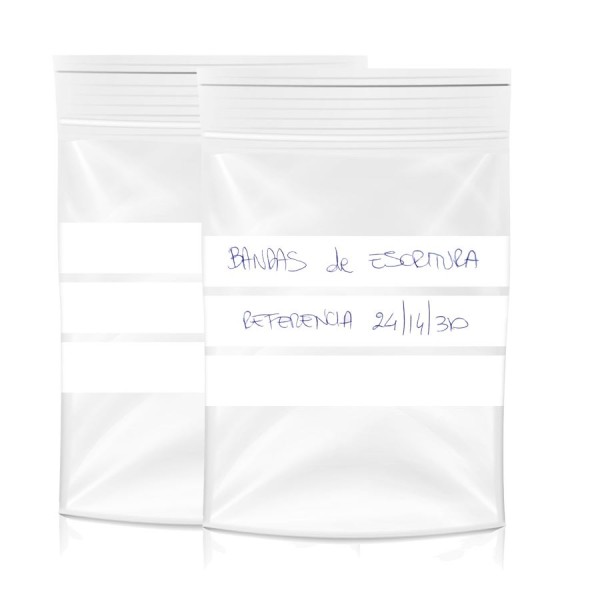 Sacos polietileno com fecho reutilizável e faixas para escrever
